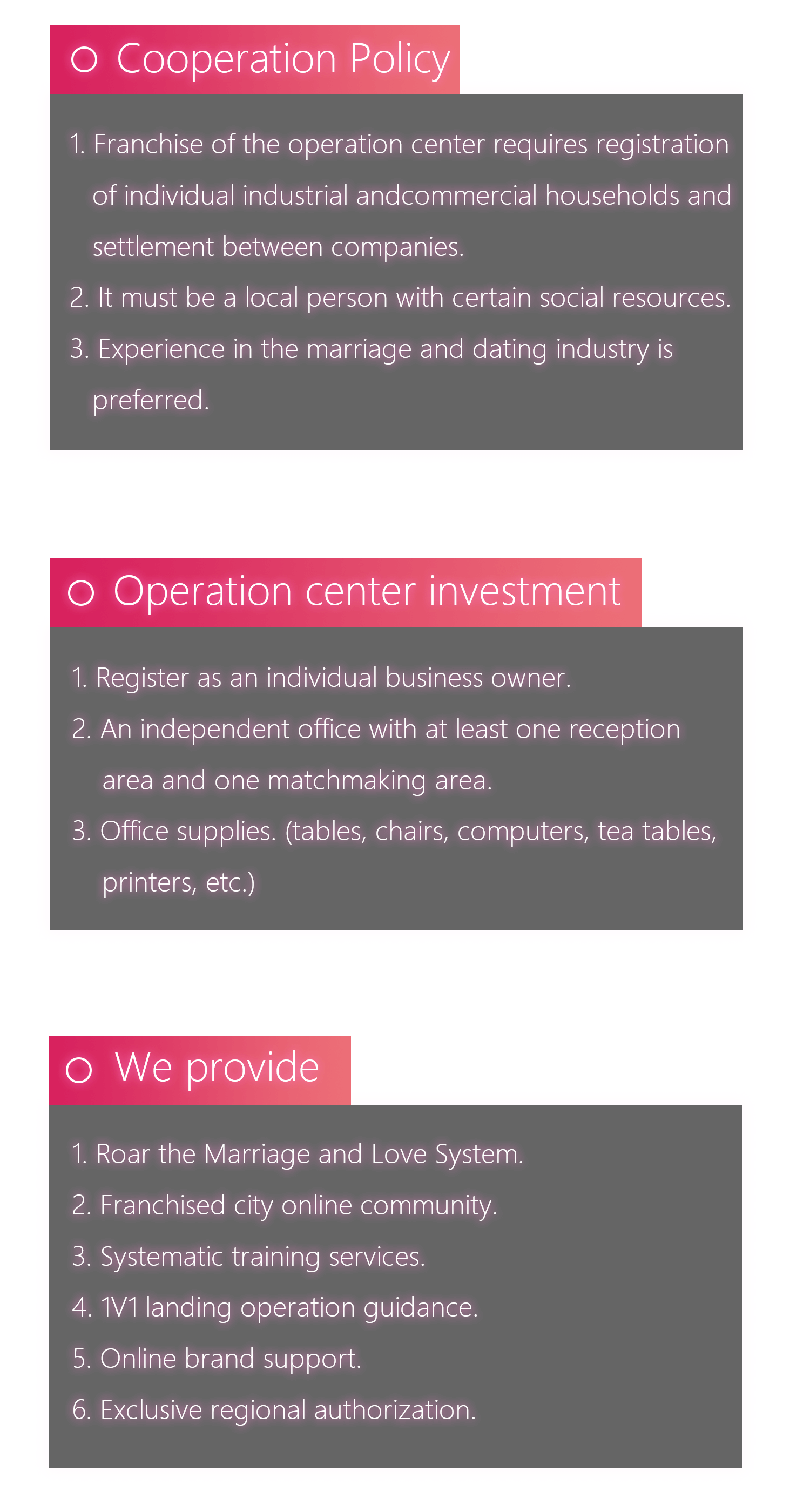 Offline, there are operation centers and matchmakers across various regions. Through functions