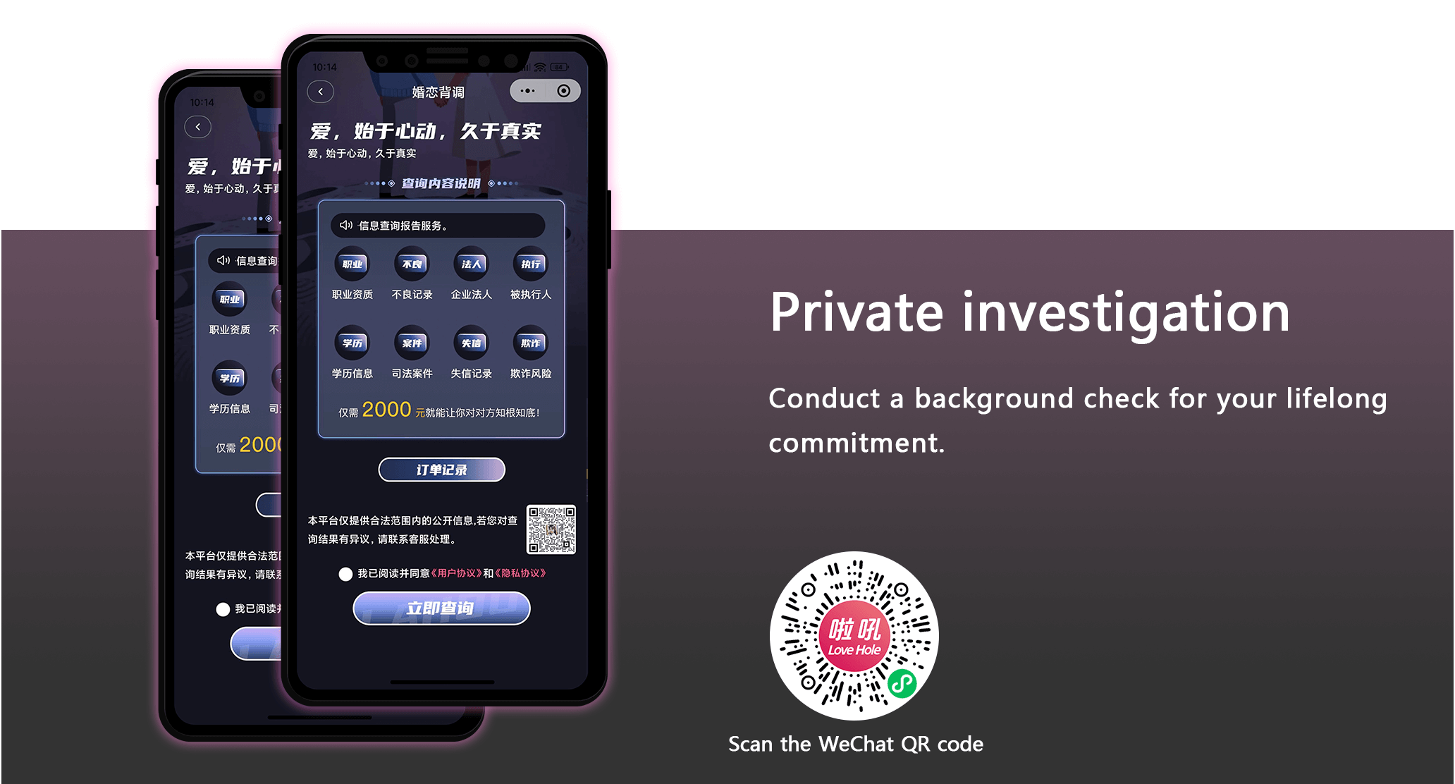 users. Value-added services enhance the safety of love and marriage, offering users a "safe",